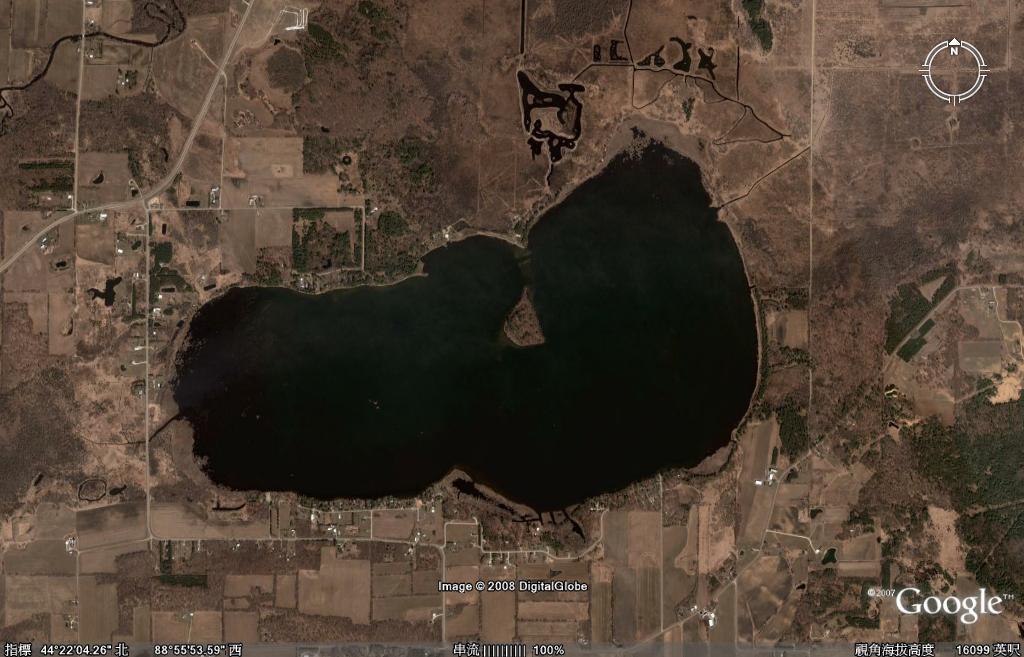 這個圖是水龍沒錯,因為這個湖的有父母水、少祖水、太祖水,其中太祖水是來自於芝加哥五大湖其中一湖,請諸位仔細看,這個湖中結一個小島,那個島就是穴,貼身水開得極為明顯,且有牛角水包圍至穴前,圖的上方也有一片岸水,這裡如何不是水龍呢?