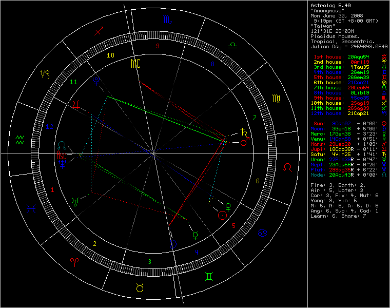 9.月亮與太陽無任何相位.所以應該說,您與對方現在並無任何交集,所以也談不上有很合的情愫.