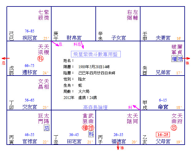 #1539265 - 2012-06-12 00:39:09 請大師幫忙看命盤裡生男生女?