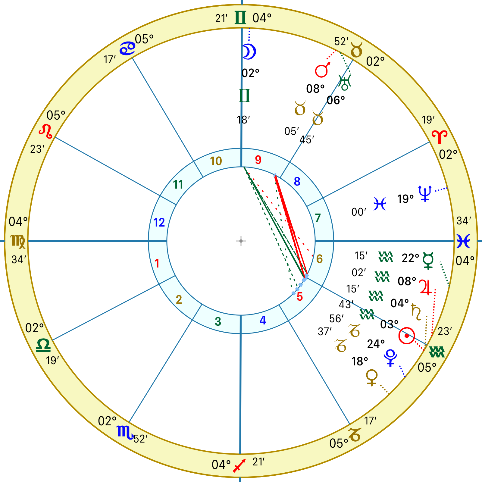 月亮在雙子座九宮內會合十宮頭,又三分五宮內冥王星、太陽、土星、以及六宮木星,想念前店長想跟他聯繫,很想交往,感覺在一起很快樂,覺得他勤奮,而且可以在工作方面指導妳。但六宮內的水星在寶瓶座與月亮成四分相,代表妳也會有擔憂和焦慮及緊張,妳想彼此之間可以保持理性而且獨立的距離,害怕妳有一廂情願的誤解,對方也和妳一樣,不太敢輕易打破彼此的界線。