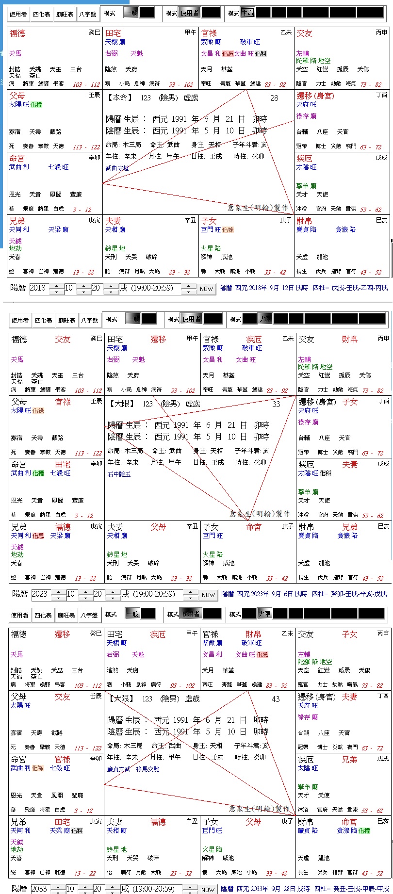 官祿官下兩個大限都化祿,是否終於出人頭地,事業有一番成就?===》恐怕會有一點難度 因為